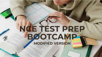 This includes CACREP material over all 8 sections covered on the NCE (National Counseling Exam.) This bundle includes a bootcamp over 6 of the domains and specific more in depth focus on theory/helping relationships and group